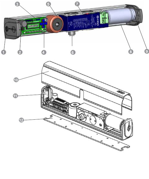 - Serijsko vgrajena baterija za odpiranje ob izpadu elektrike (12DC 1,3Ah).